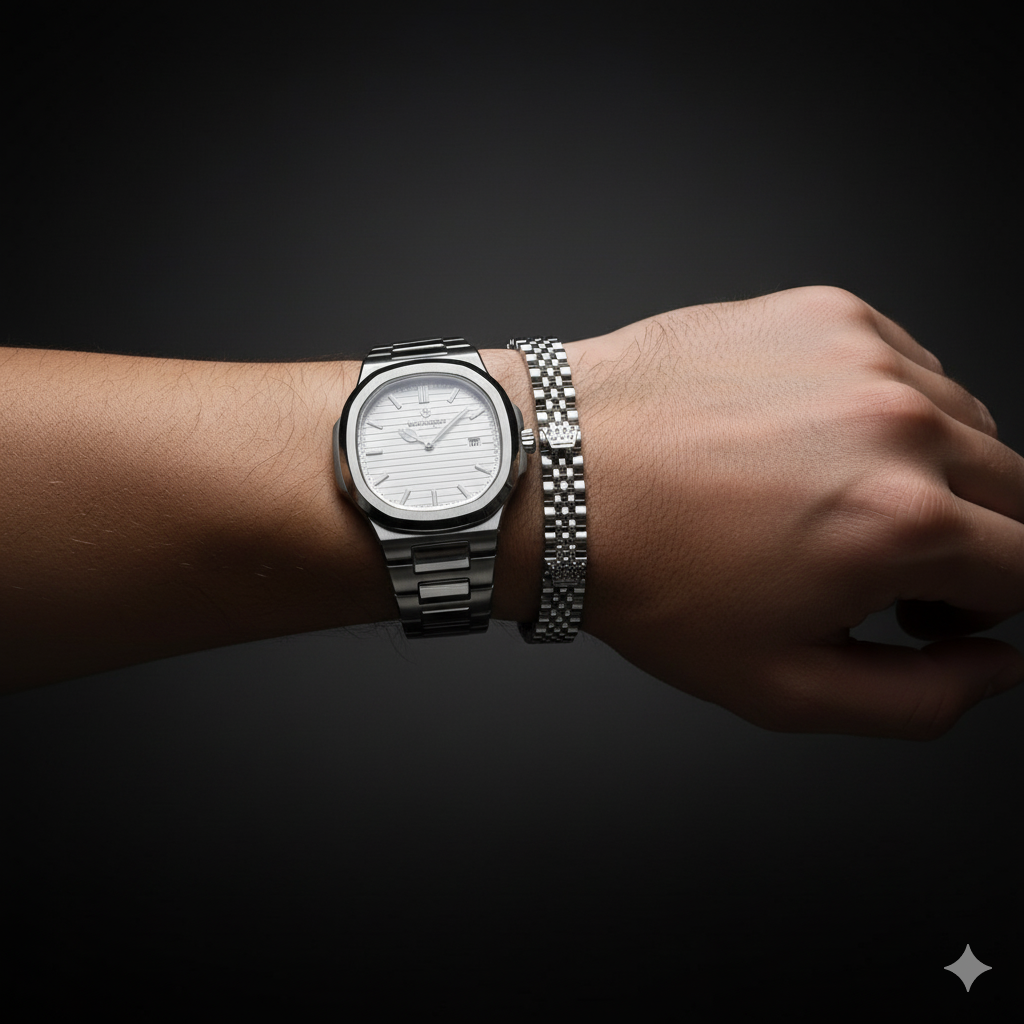 POEDAGAR Men's Luxury Business Watch Gift Brand POEDAGAR 50M Water Resistant Square Dial Date Display Diamond Markers Luminous 316L Silver Stainless Steel Japan Quartz Movement - Premium Built-In Ultra-Long Battery Life Dad Brother Partners Birthday Holidays Exam Back To School Essentials