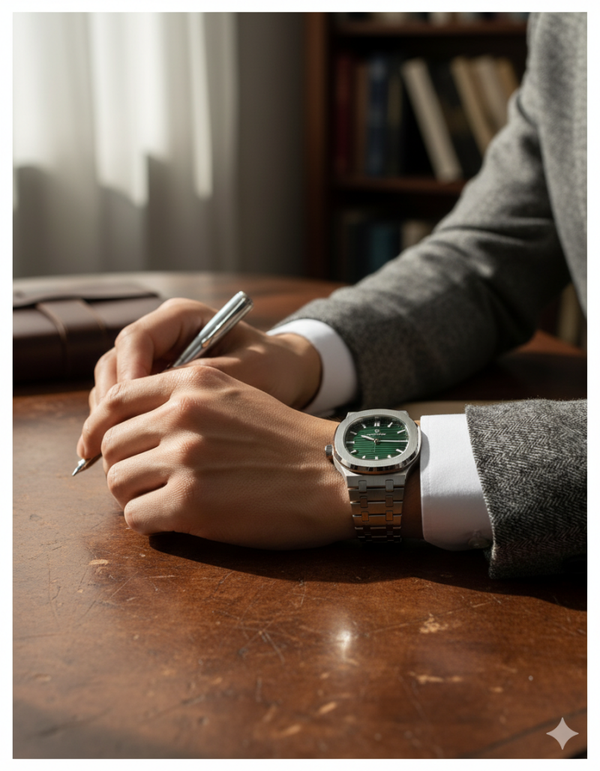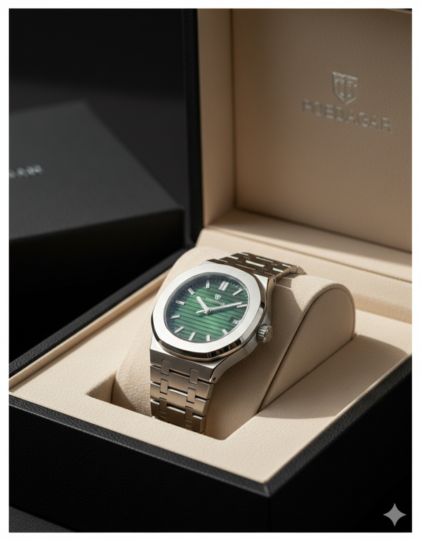 POEDAGAR Men's Luxury Business Watch Gift Brand POEDAGAR 50M Water Resistant Square Dial Date Display Diamond Markers Luminous 316L Silver Stainless Steel Japan Quartz Movement - Premium Built-In Ultra-Long Battery Life Dad Brother Partners Birthday Holidays Exam Back To School Essentials Green face exclusive